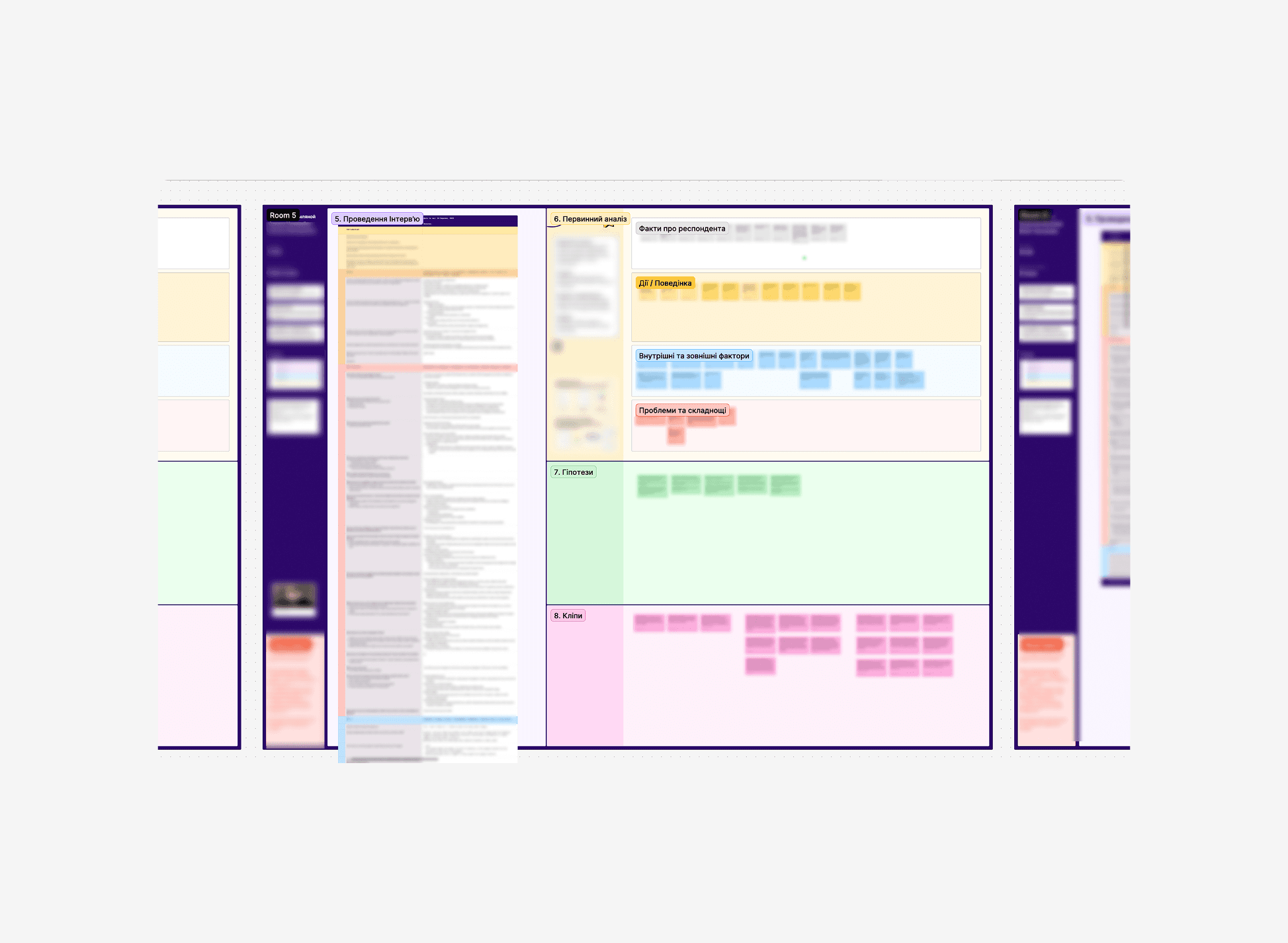 I personally interviewed a user who was on a trial plan. The collected insights were analyzed across several layers: factual user data, actions, internal and external factors, pain points, challenges, hypotheses, and notable quotes.