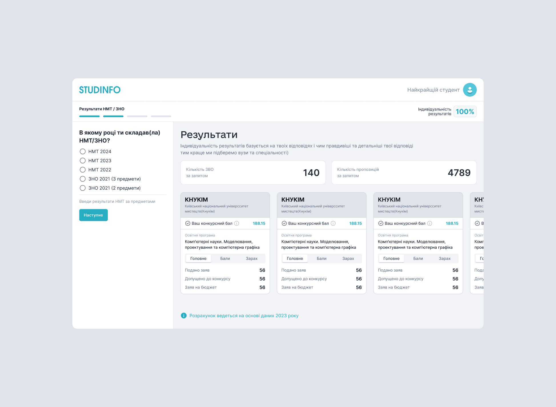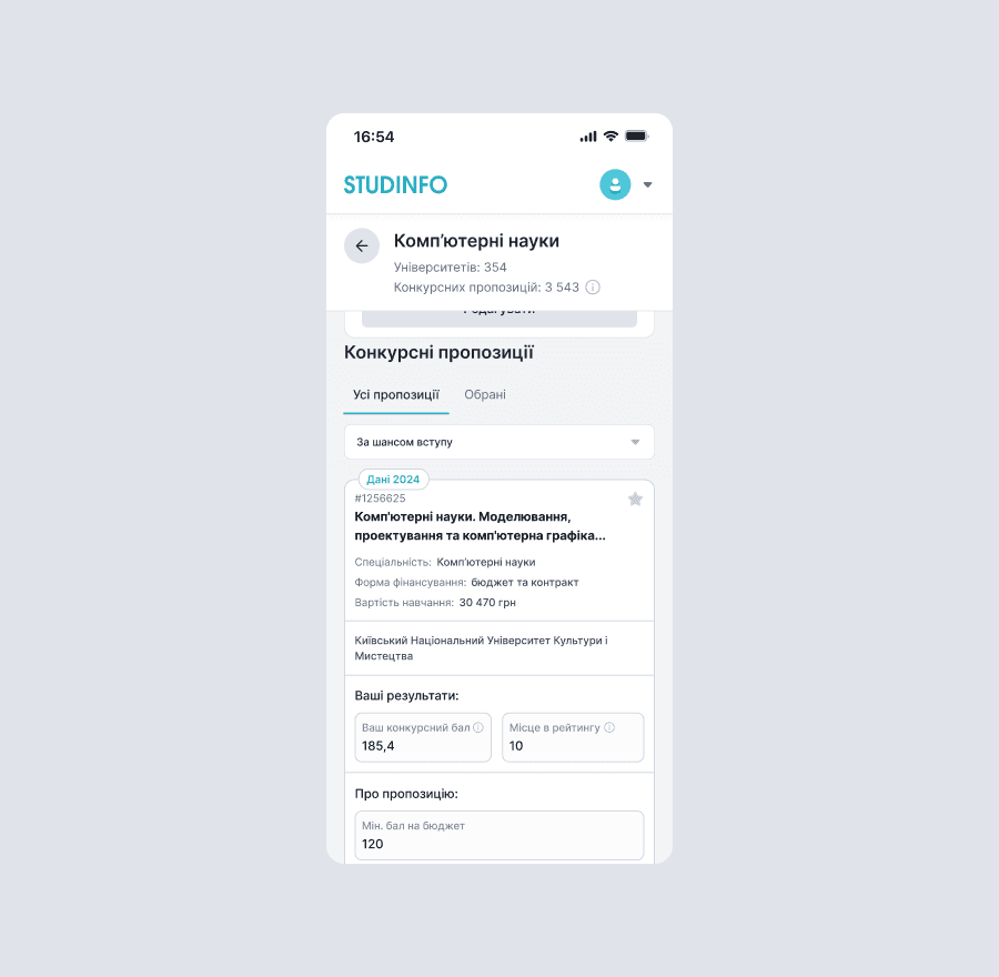 STUDINFO is an EdTech platform that simplifies the university application process in Ukraine by providing applicants with personalized recommendations, up-to-date data, and tools to make informed decisions about their educational path.