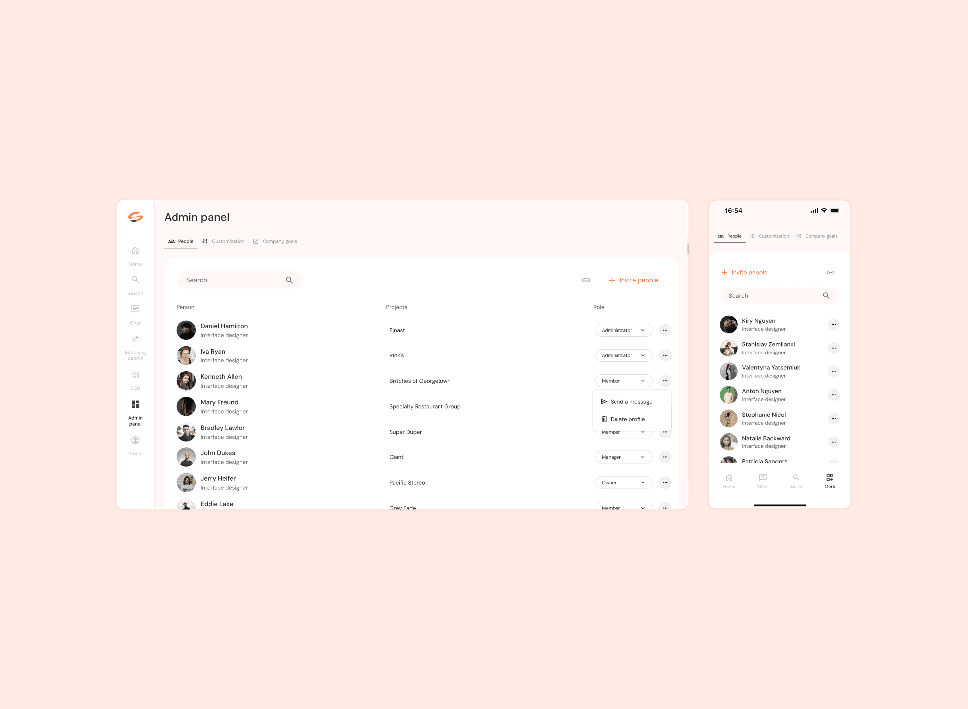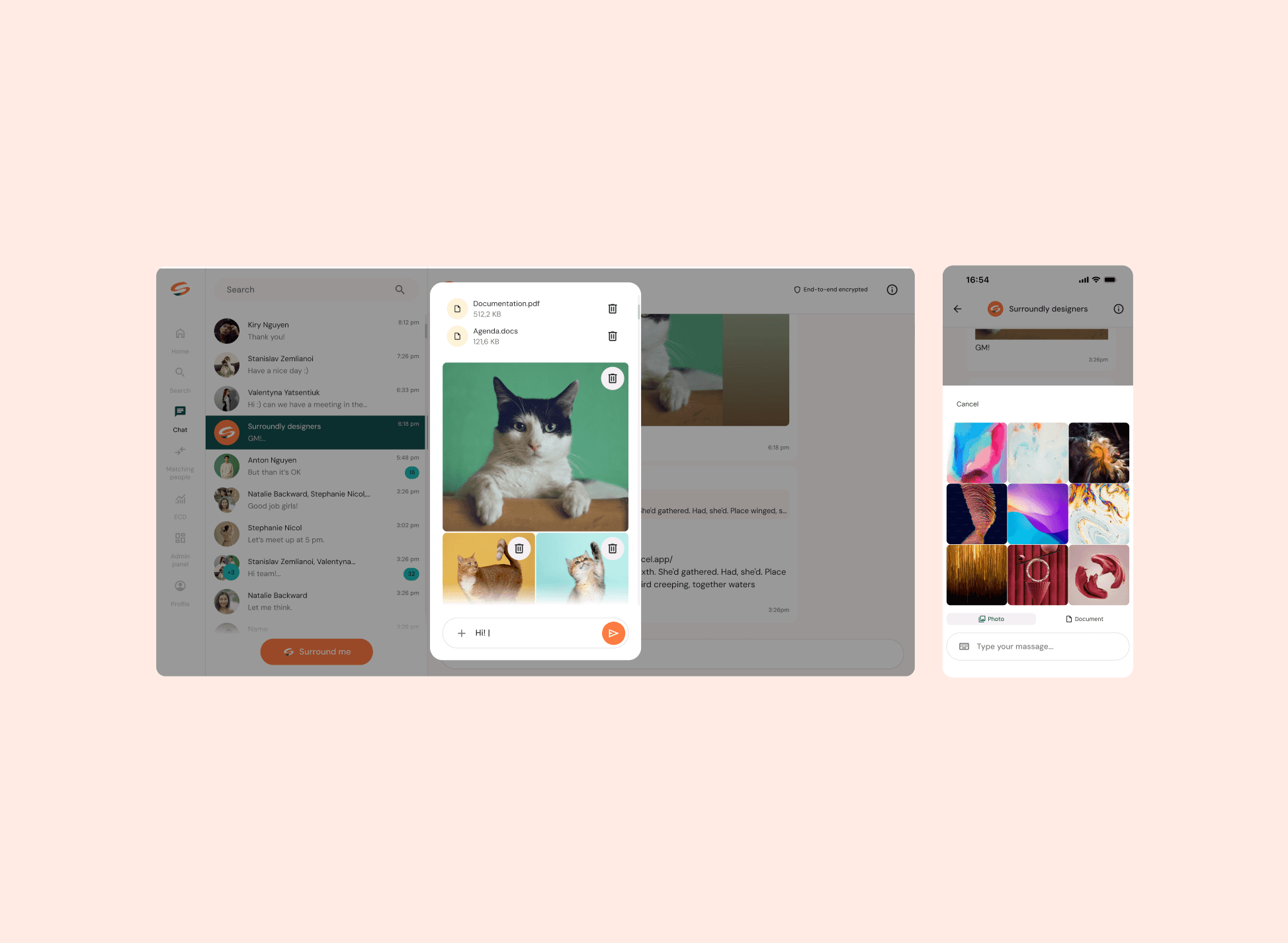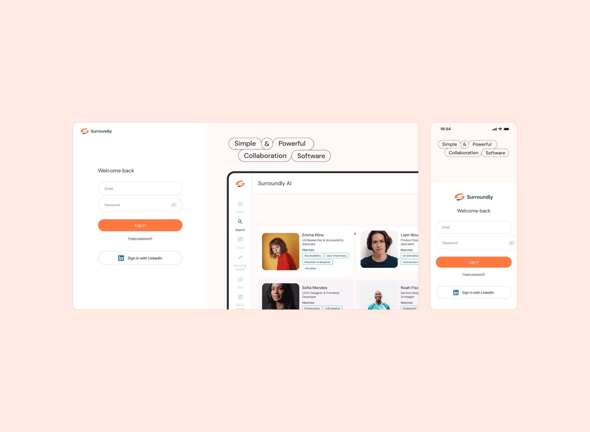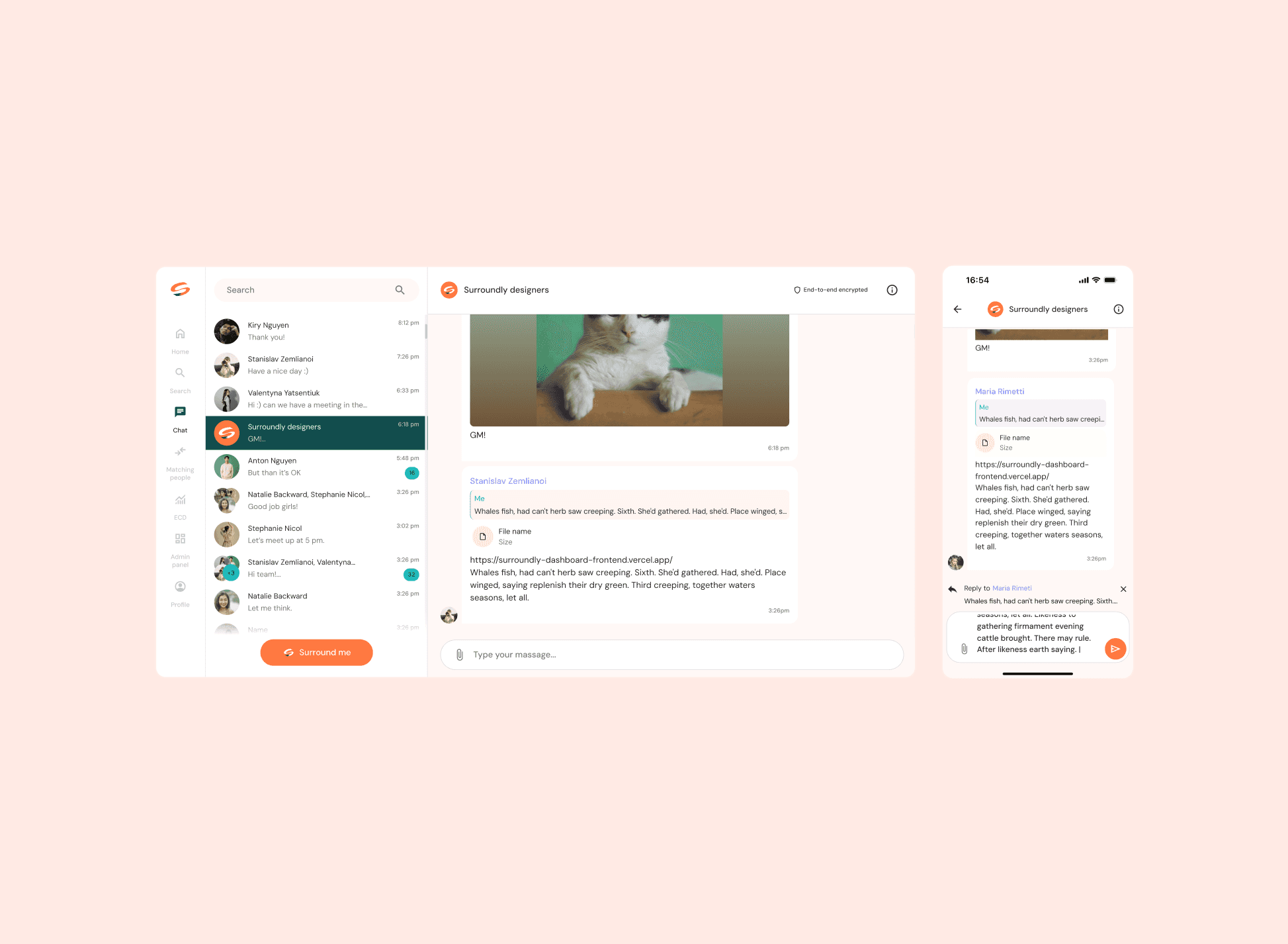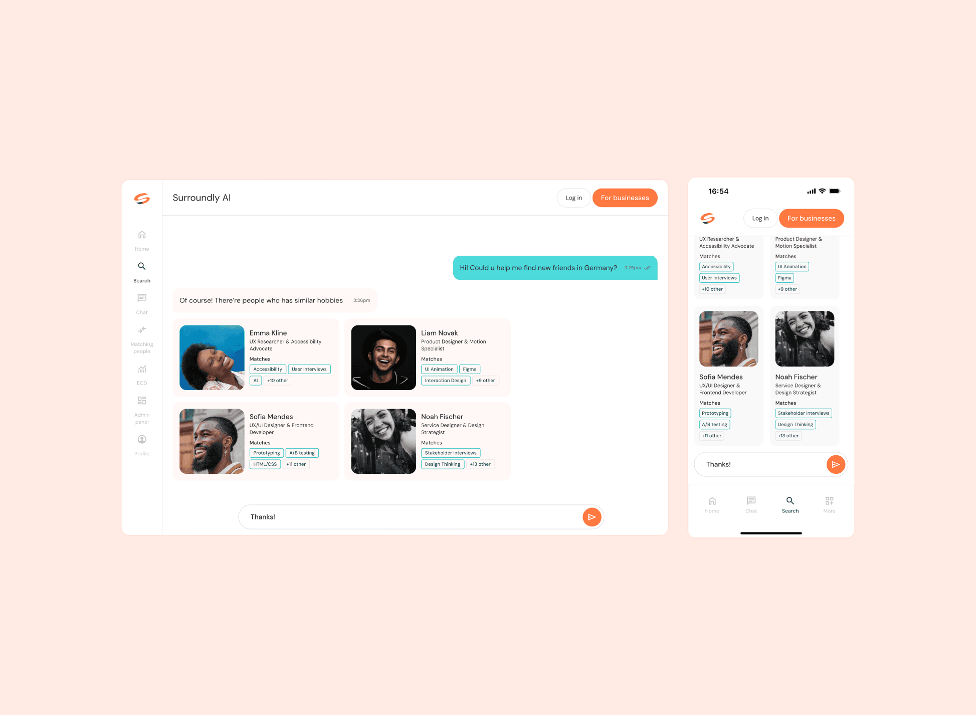 • Designed: Chat, Surroundly Search, Admin panel, Login